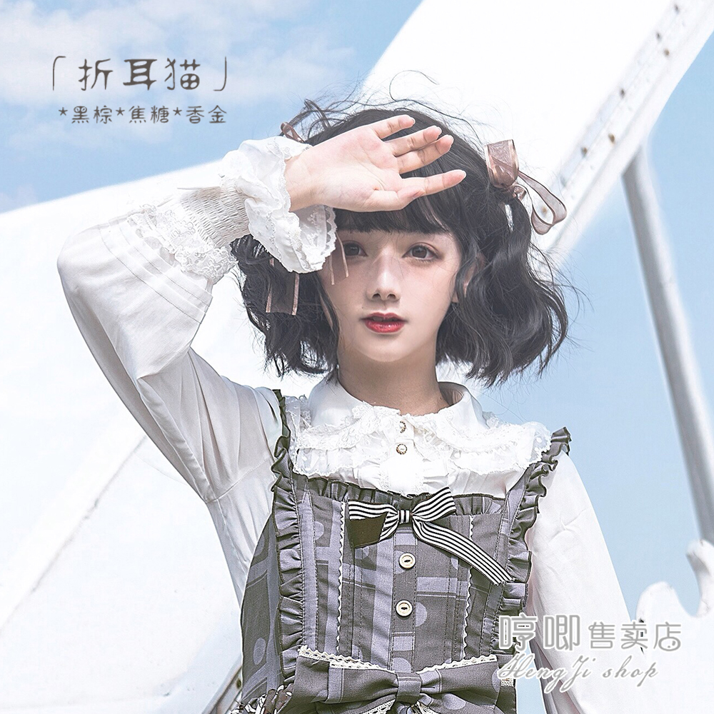 Humming Lolita Original Cebu Everyday "Folded Ear Cat" Bubble Face Rolls Water Ripple Women Roleta Round Face Cute Wigs
