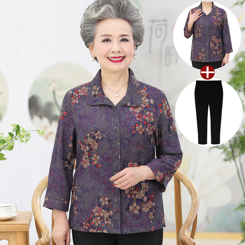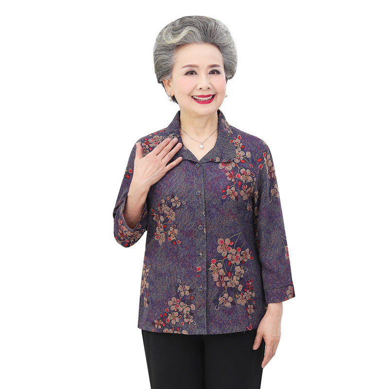 Middle-aged and elderly women's clothing and summer clothes shirts Mom's spring clothing Thin Cardiovert Grandma Dress the old lady's clothes