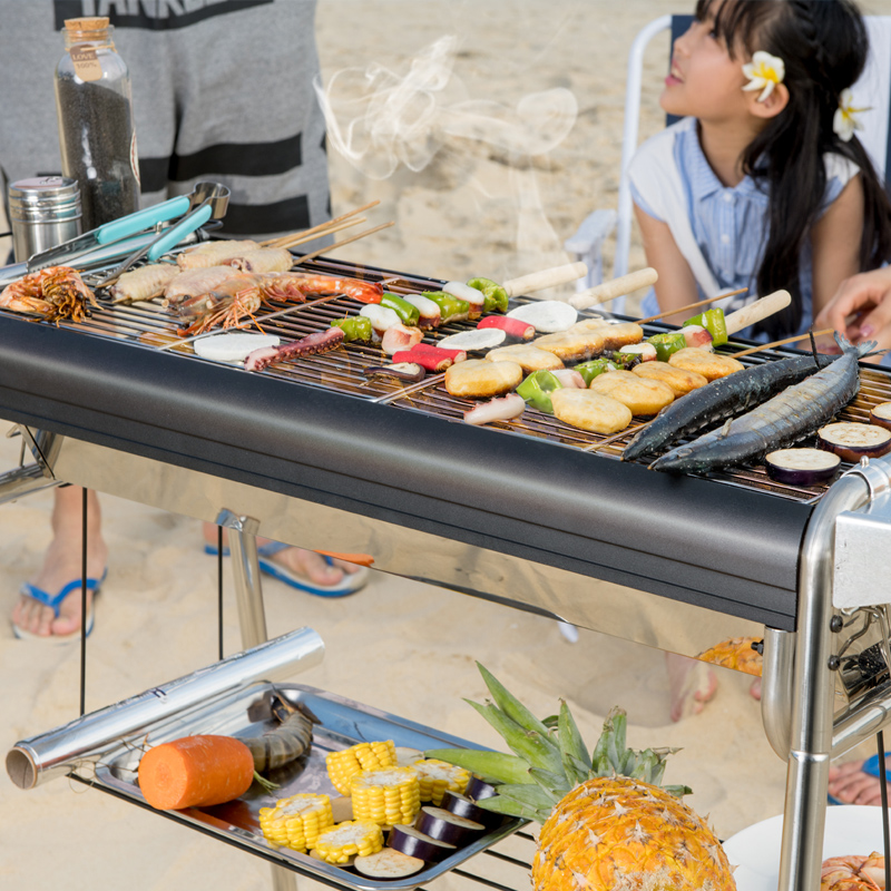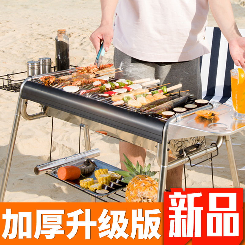 Full set of thickened barbecue grill charcoal household stainless steel barbecue grill outdoor tools field carbon barbecue stove shelf