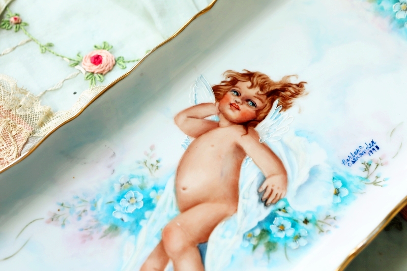 22-05 American old and used goods OOAK hand-painted angel decorative plate jewelry storage plate FP48