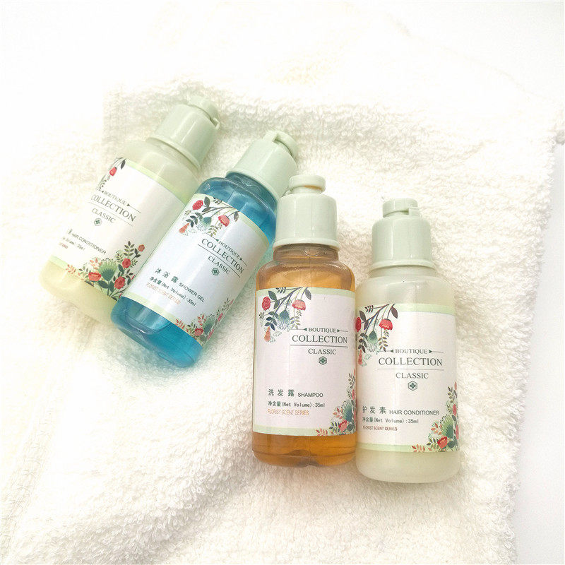 5 star hotel room bath room toiletries bottled shampoo with 35 ml bath liquid