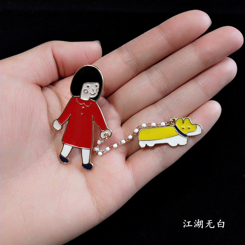 Japanese creative small fresh art drop oil girl dog breast pin buckle cute cartoon anti-wear pin accessories female