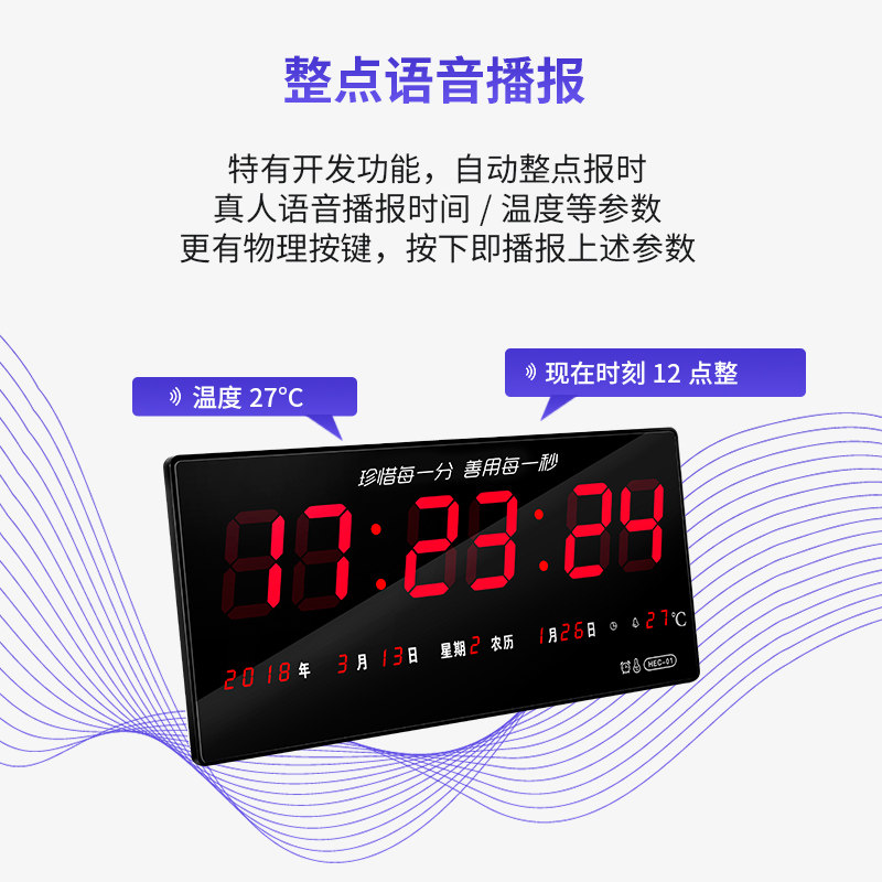 LED digital perpetual calendar electronic wall clock luminous calendar clock living room mute rectangular electronic clock calendar clock