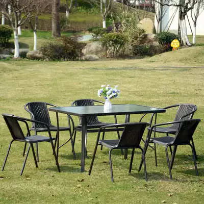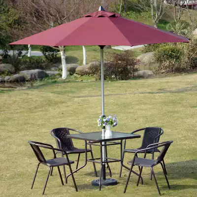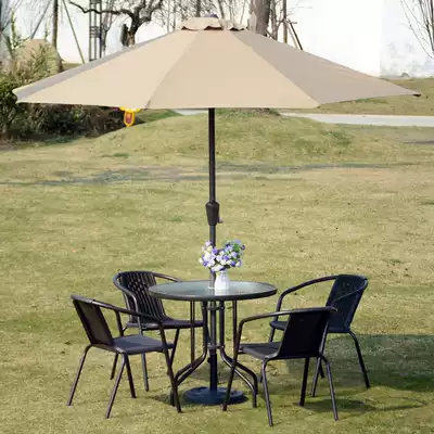 Outdoor table and chair with umbrella rattan chair three-five-piece outdoor chair outdoor leisure balcony small coffee table iron courtyard table and chair