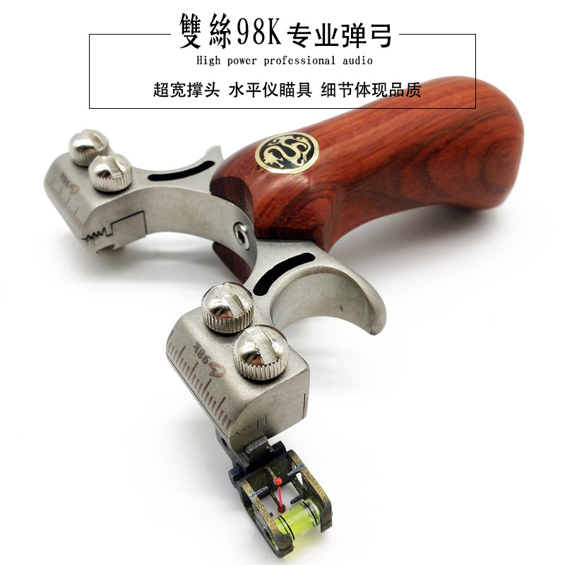 Wood handle 98K knife vanguard god eagle double screw gradienter with 25mm leniency head quick press clamping sheet flat leather slingshot