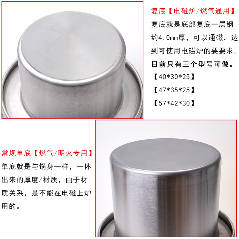 Thicken stainless steel cooker special hot soup powder pan face Zheng Shuzheng Shuzheng Stove Warm Pan Stove Water Drum Wide Tail