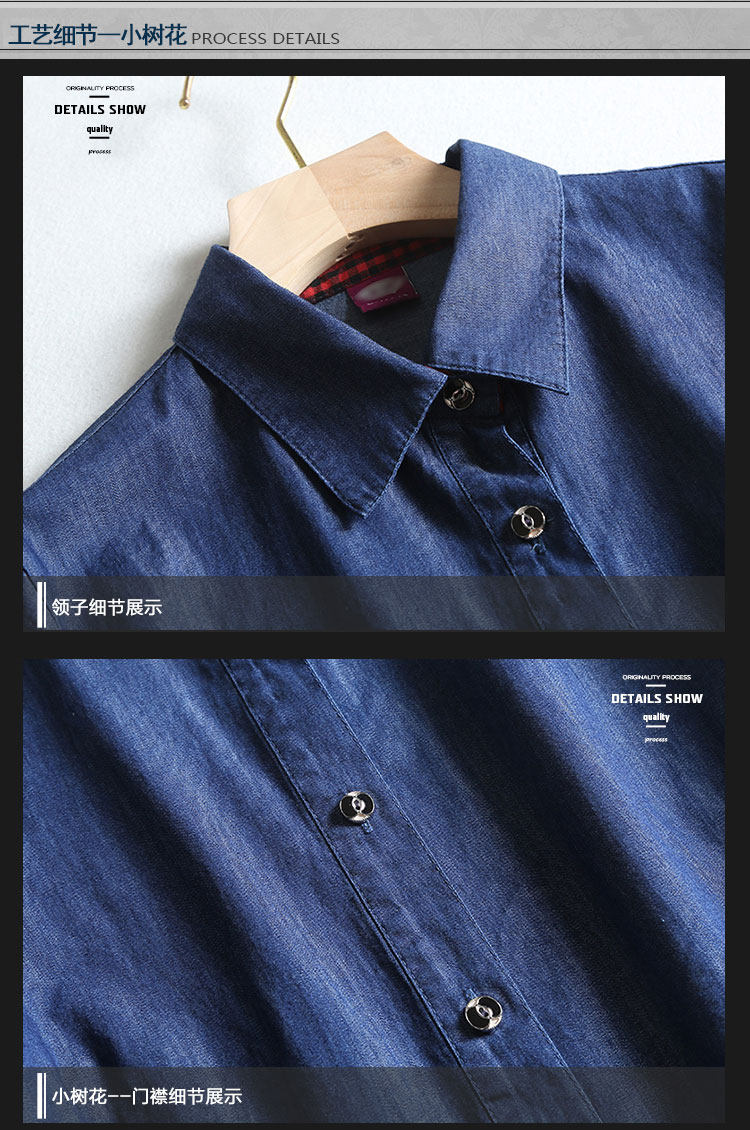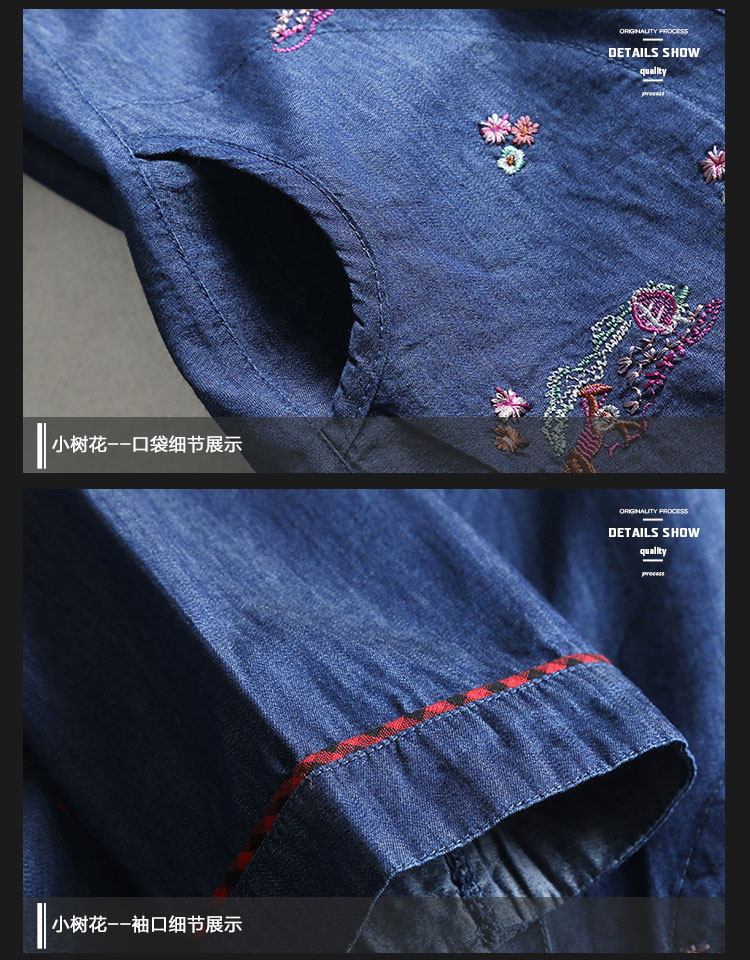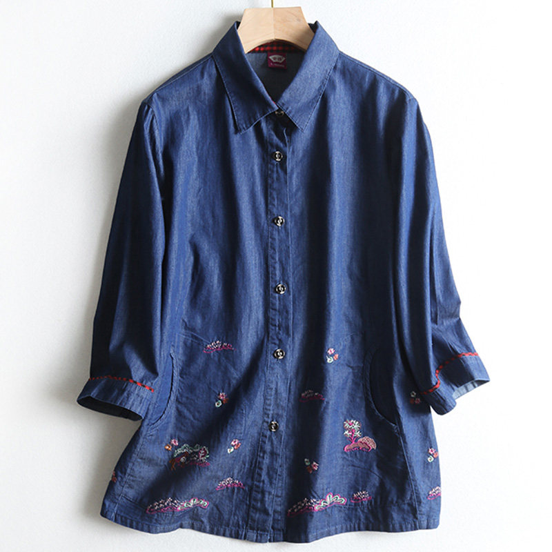 Summer large size for older people fat moms full cotton denim shirt gattening body grandma 70% sleeves cardiovert woman blouse