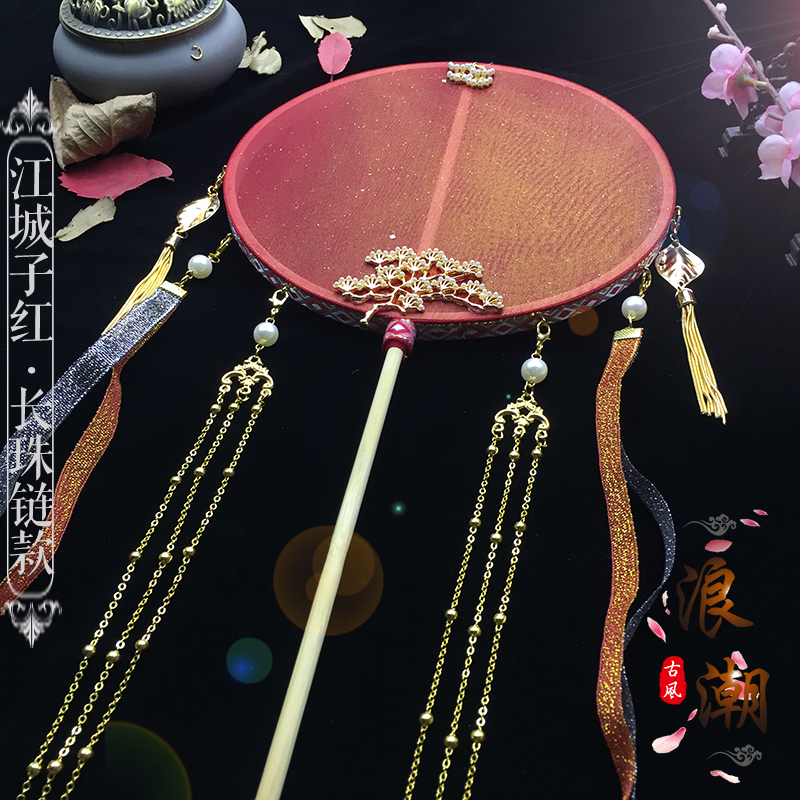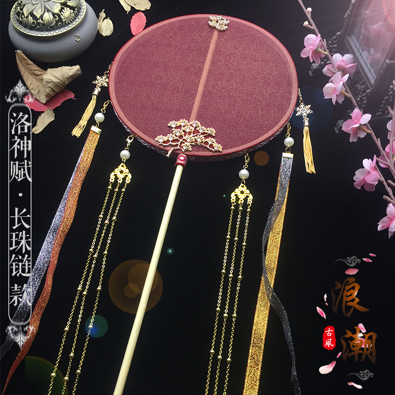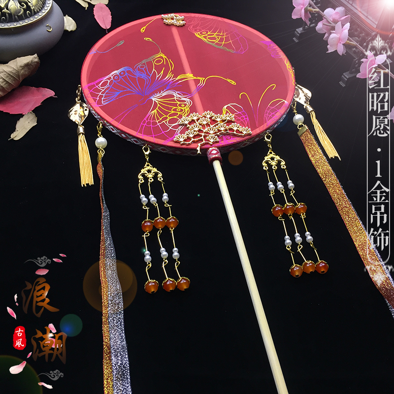 Antique long handle fan tassel fan Chinese style female Hanfu photo DIY material package bride wedding fan