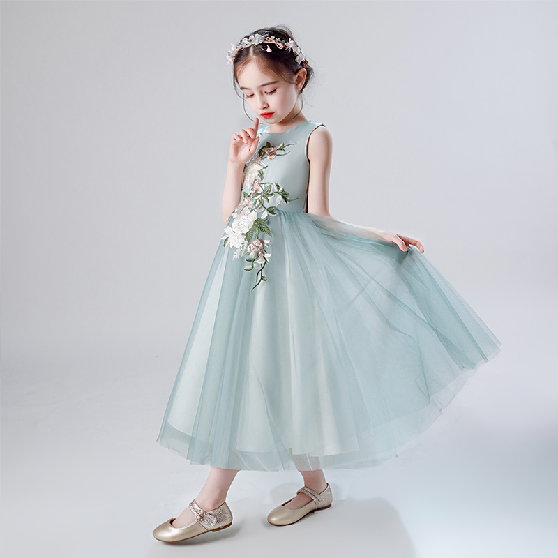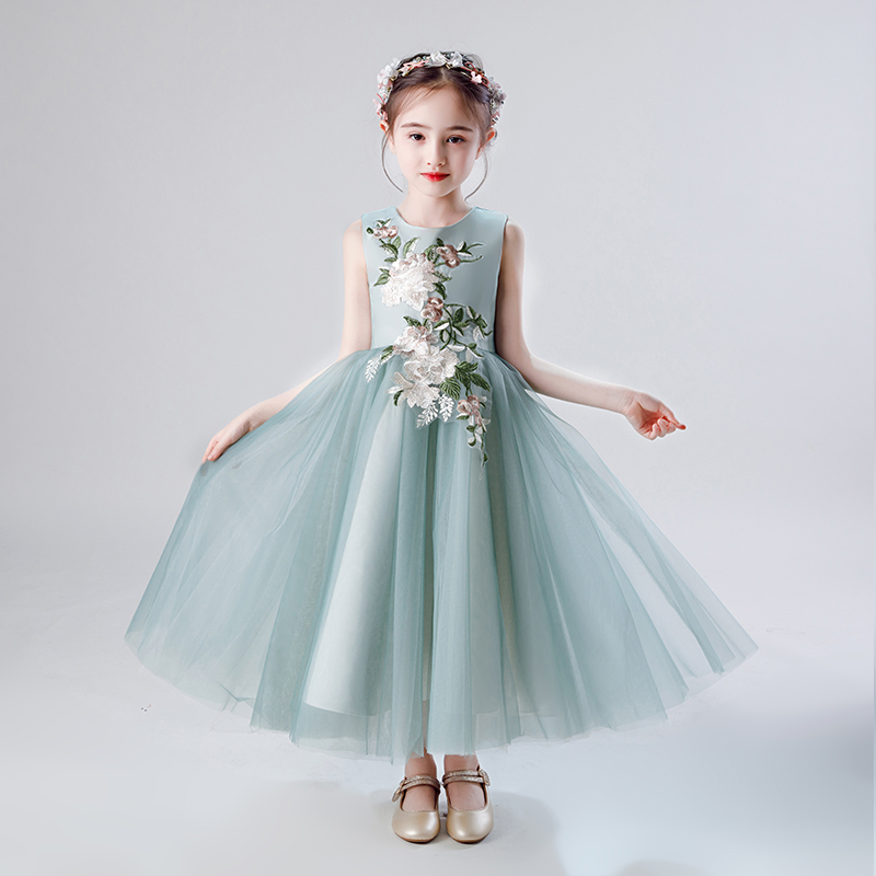 Girl's Princess Lieven Dress Children Suit Fluffy Dress Dress Gown Dress Long Dresses Summer Dress Summer 2022 New Green