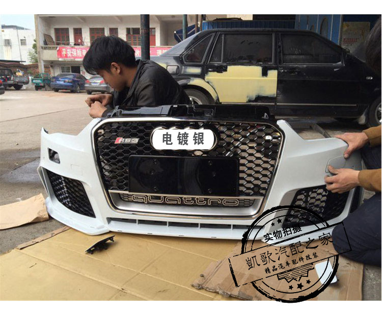 14-16 sedan RS3 front bumper with center grille 14-16 sedan RS3 front bumper does not include grille and grille can choose color matching 14-16 hatchback RS3 front bumper