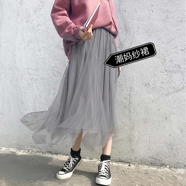 Maternity dress summer new skirt mesh Korean fashion spring and autumn dress base large size loose long dress