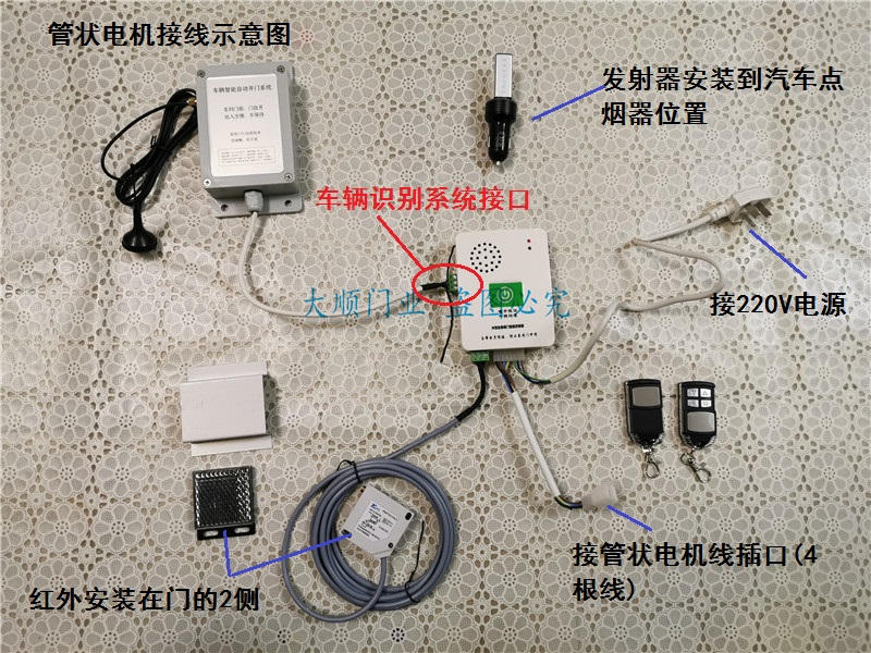 Vehicle recognition (door opener 1 vehicle) vehicle identification (extra-mounted motor 1 vehicle) vehicle identification (tube motor 1 vehicle) with 1 U disk transmitter (1 car with 1)