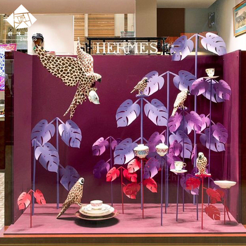 Paper says floral paper art leaf shop window decoration floral wall background wall decoration high-end custom emulated jungle leaves-Taobao