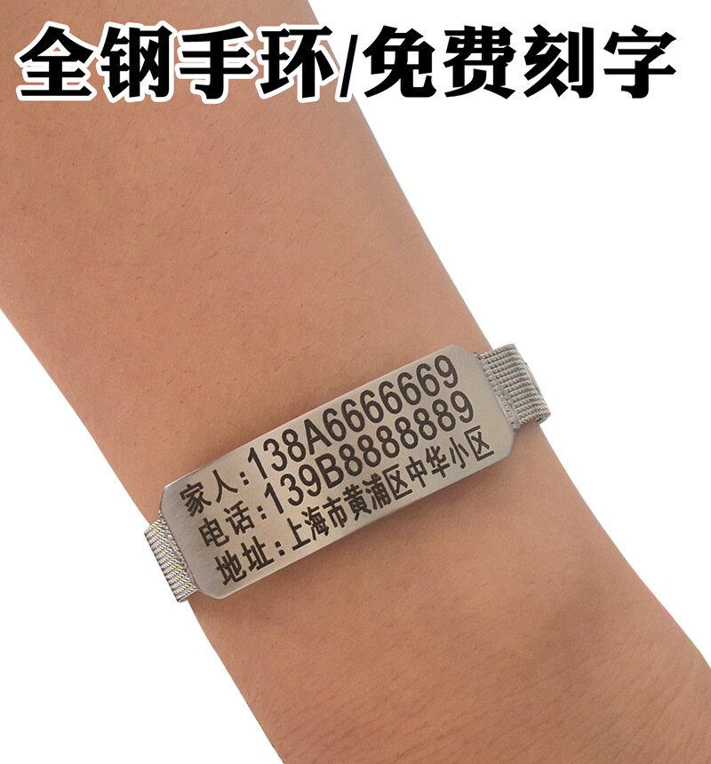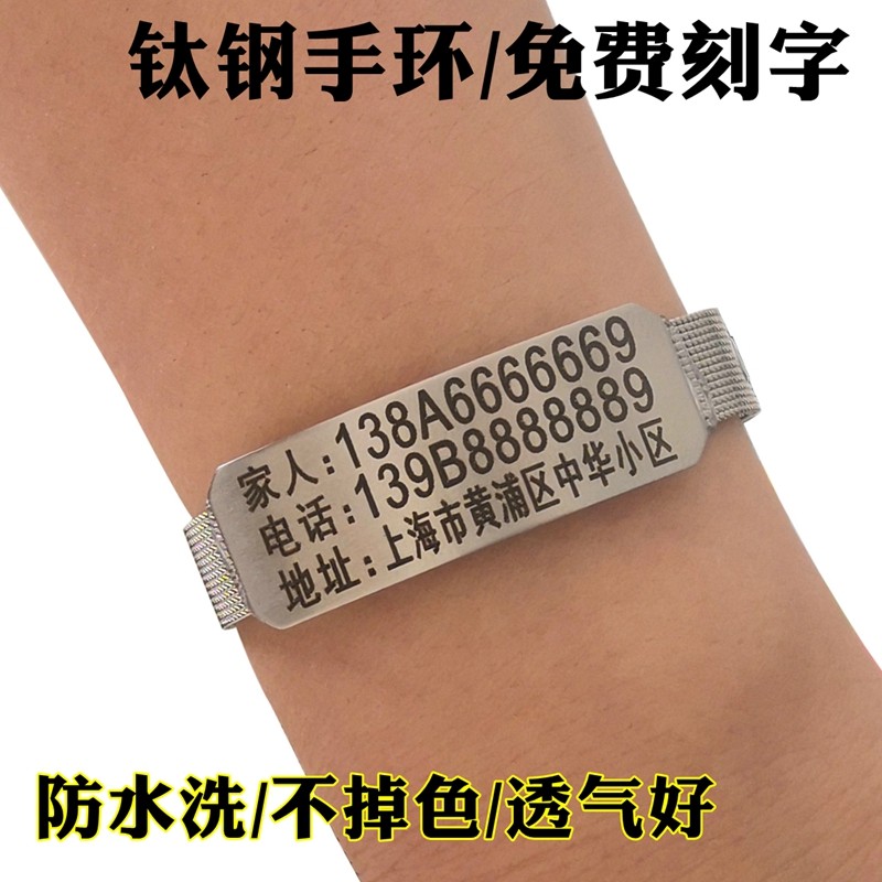 Old man anti-lost hand ring Alzheimer's artifact lost custom male titanium steel pick lettering Children anti-lost hand ring