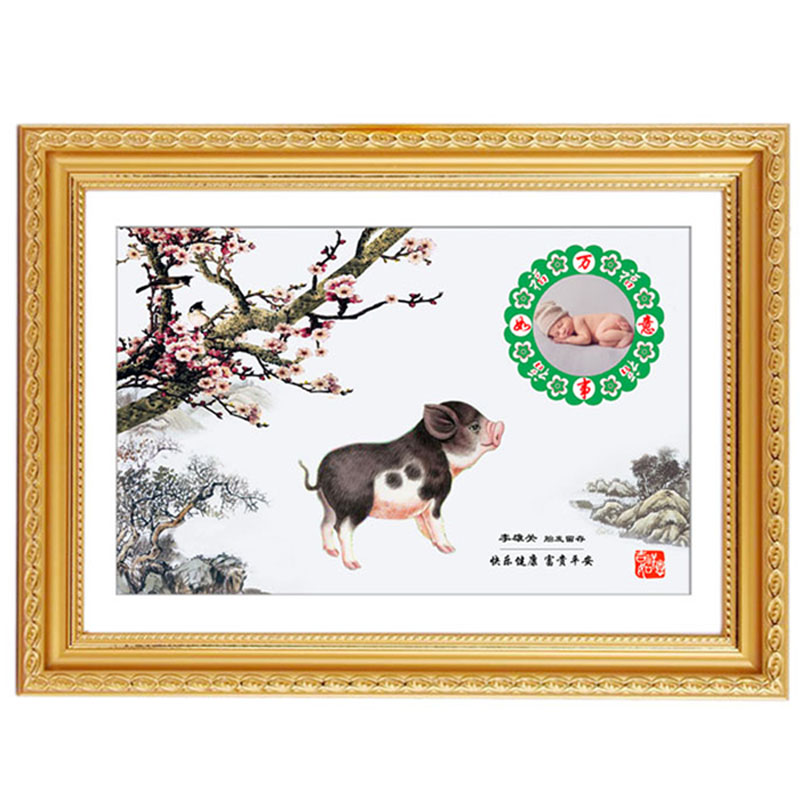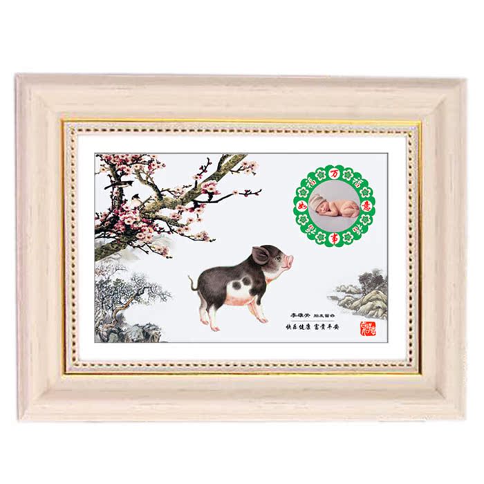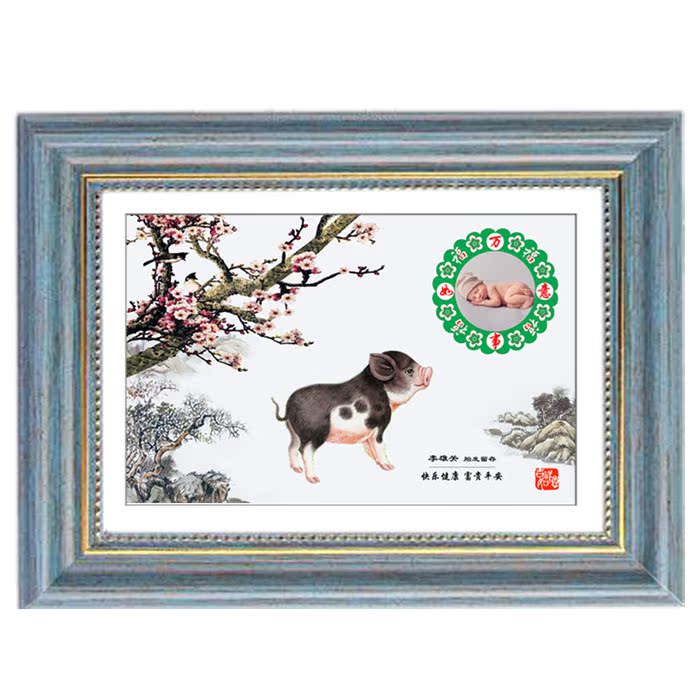 Pig dog chicken baby fetal hair painting diy homemade souvenir Handmade portrait painting 100 days full moon gift stamp pen pendant