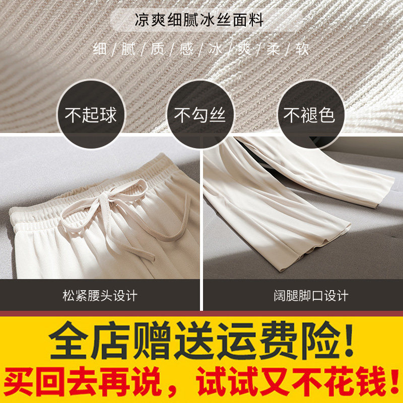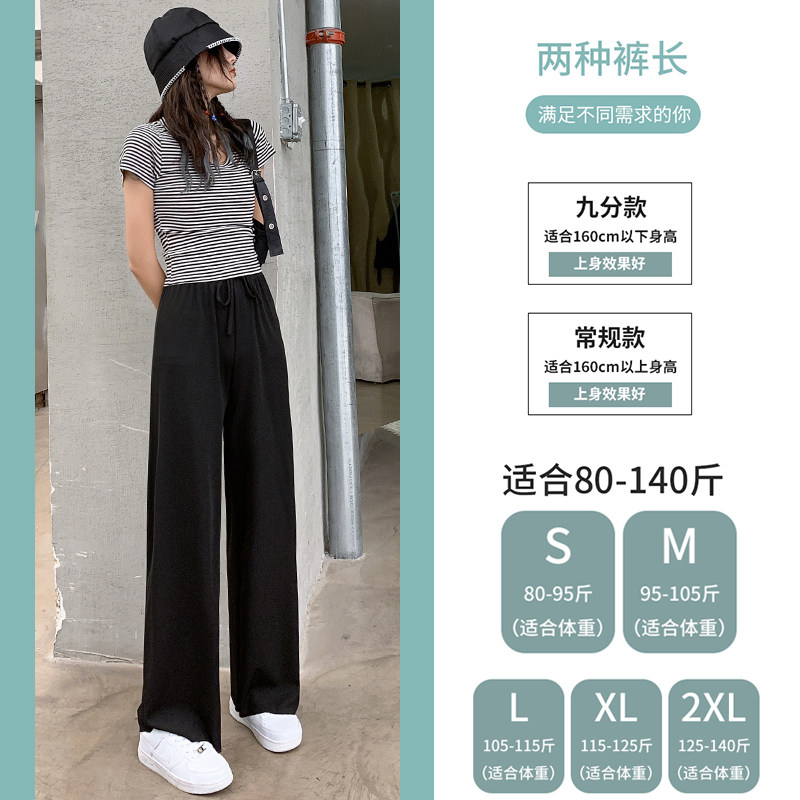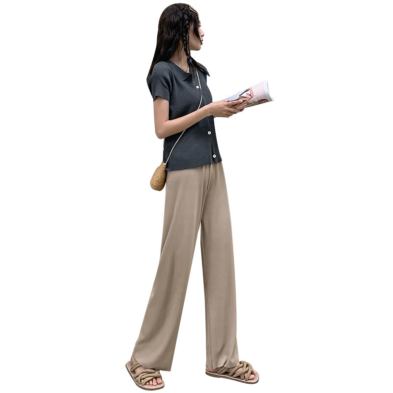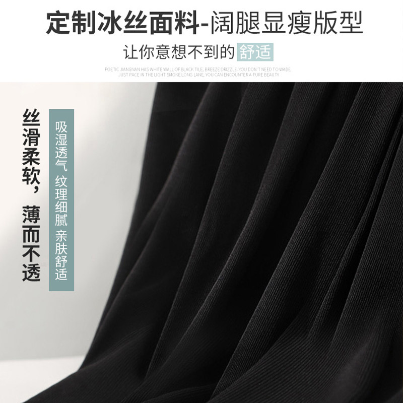 Ice silk wide-leg pants women's spring and summer thin nine-point knitted pants are thin and high-waisted Korean style drapey straight elastic waist