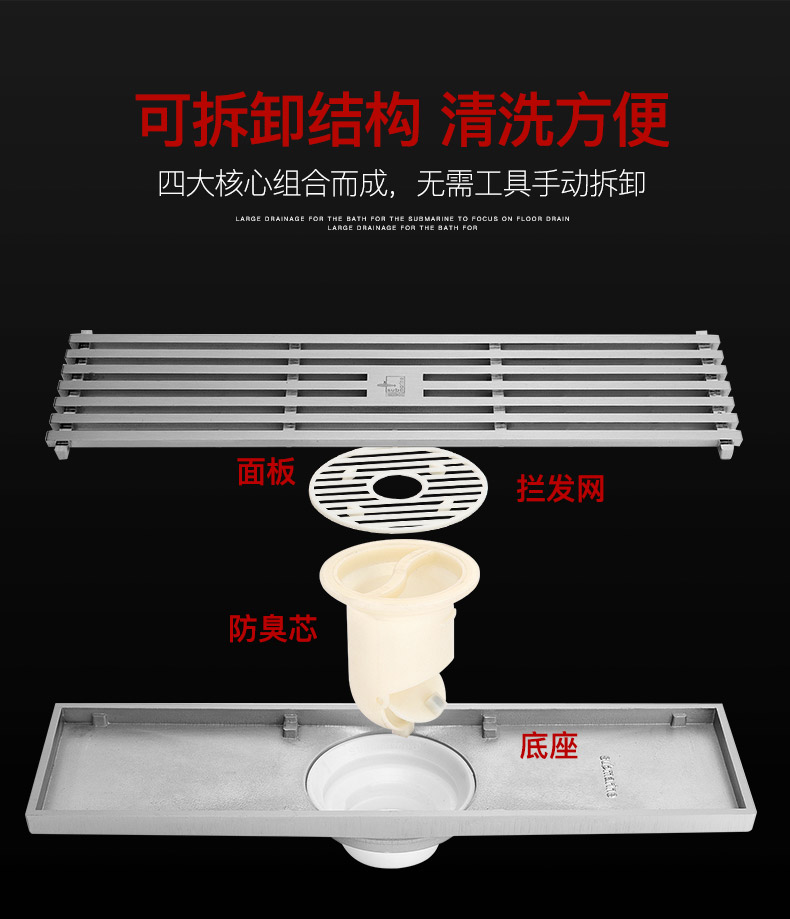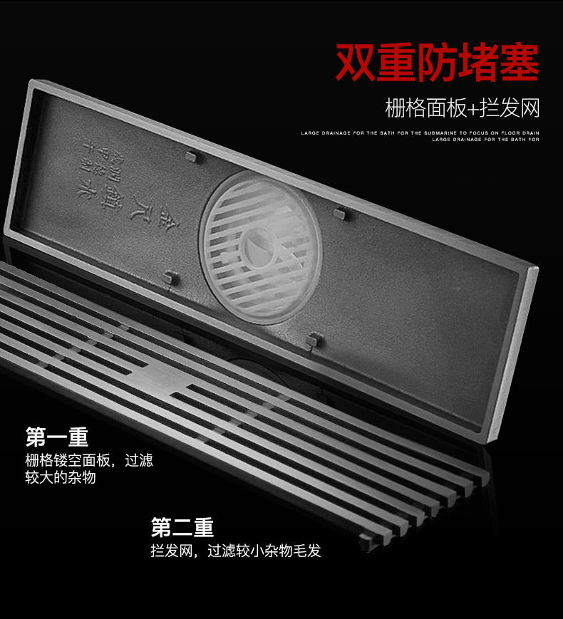Rectangular elongated strip large floor drain large displacement fast drainage large panel bathroom balcony kitchen filter 20 30