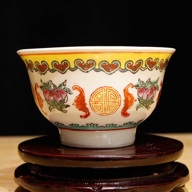 Jingdezhen factory goods Wenge porcelain rice bowl pomegranate bowl soup bowl Fushou bat longevity peach bowl hand-painted pastel stock