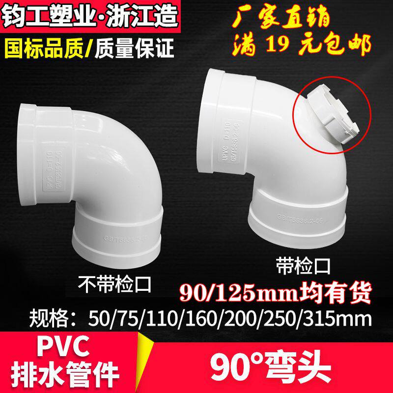 PVC drainage pipe right-angle elbow with inspection port 90-degree elbow national standard drainage pipe fittings 50 75 110