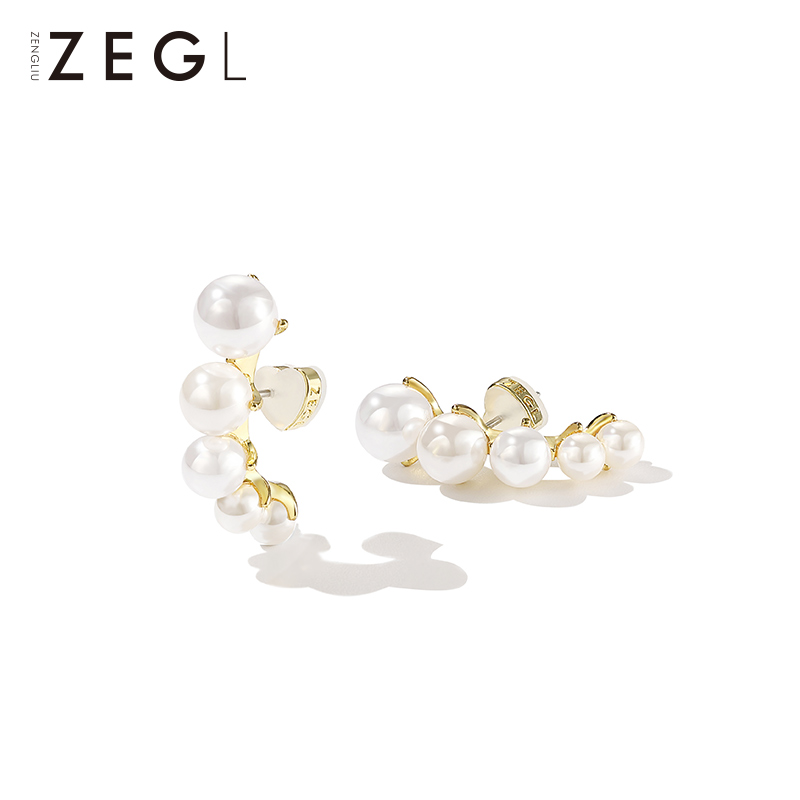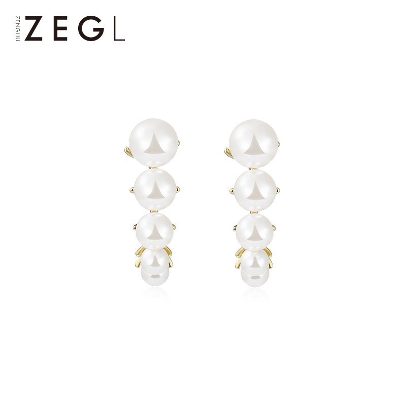 ZENGLIU premium sense elegant imitation pearl earrings women's row stud stud temperament French versatile net red ear ornaments