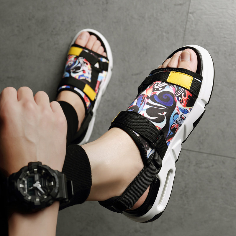 Slippers Men's Summer Tide Brand Beach Sandals and Slippers Men's Outer Wear Personality Net Red Korean Sports One-word Slippers 2022 New