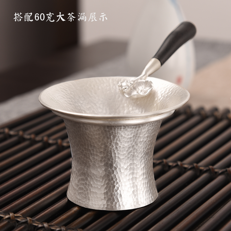 Taian Silver Silver Tea Leak Bracket Pure Handmade Hammer Pattern Kung Fu Tea Ceremony Accessories Tea Filter Base