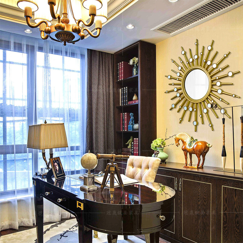 Sun background wall decoration mirror corridor light luxury fashion model room retro dining side wall TV wall living room
