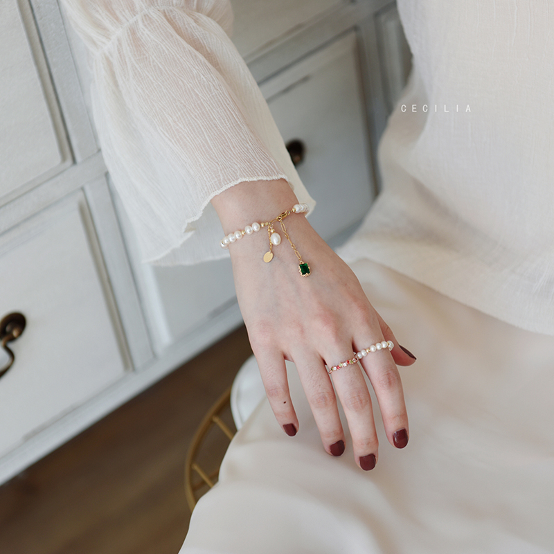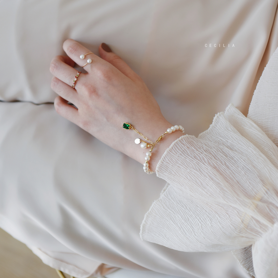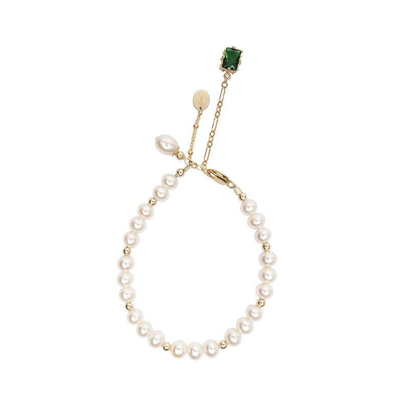 CECILIA design knock bright natural freshwater pearl 14k gold emerald Zircon hand chain hand Kushiro temperament woman
