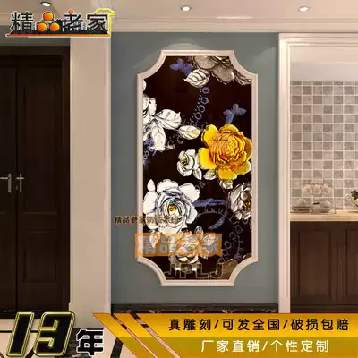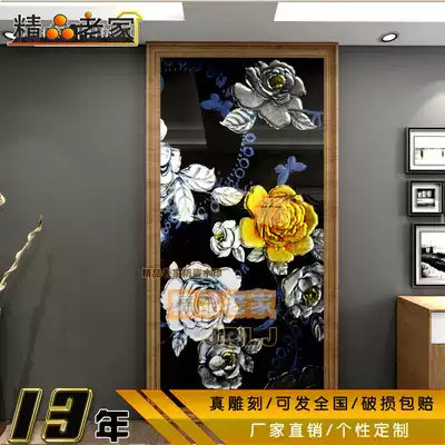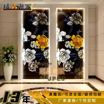 Modern minimalist carving paint gold and silver foil decorative art glass dining room aisle porch entrance background wall 1125