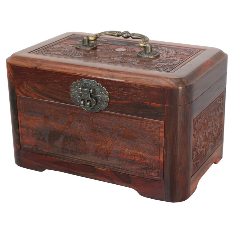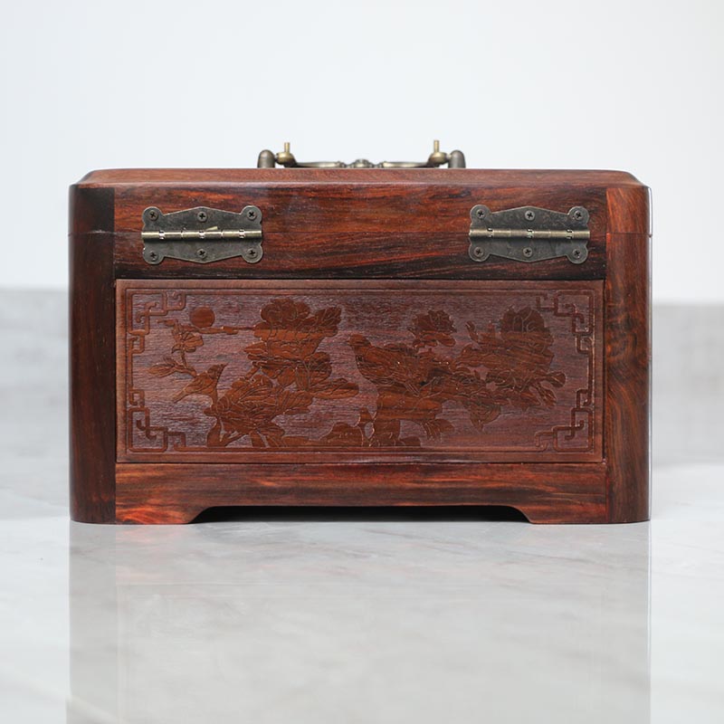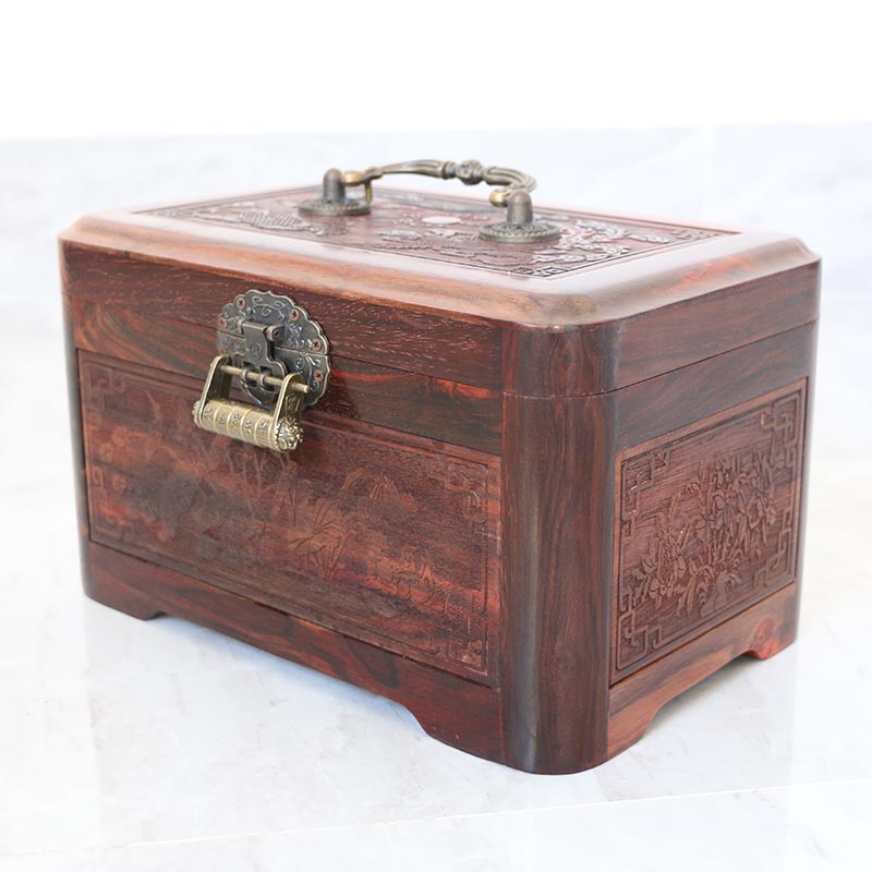 Mahogany jewelry box red rosewood high-grade large-capacity solid wood antique treasure chest storage box retro mortise and tenon with lock