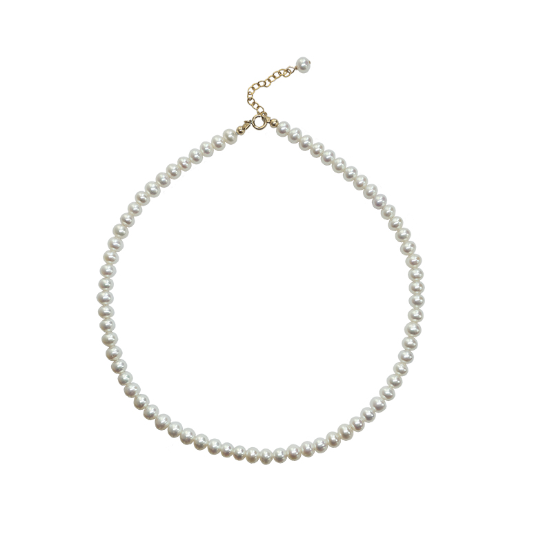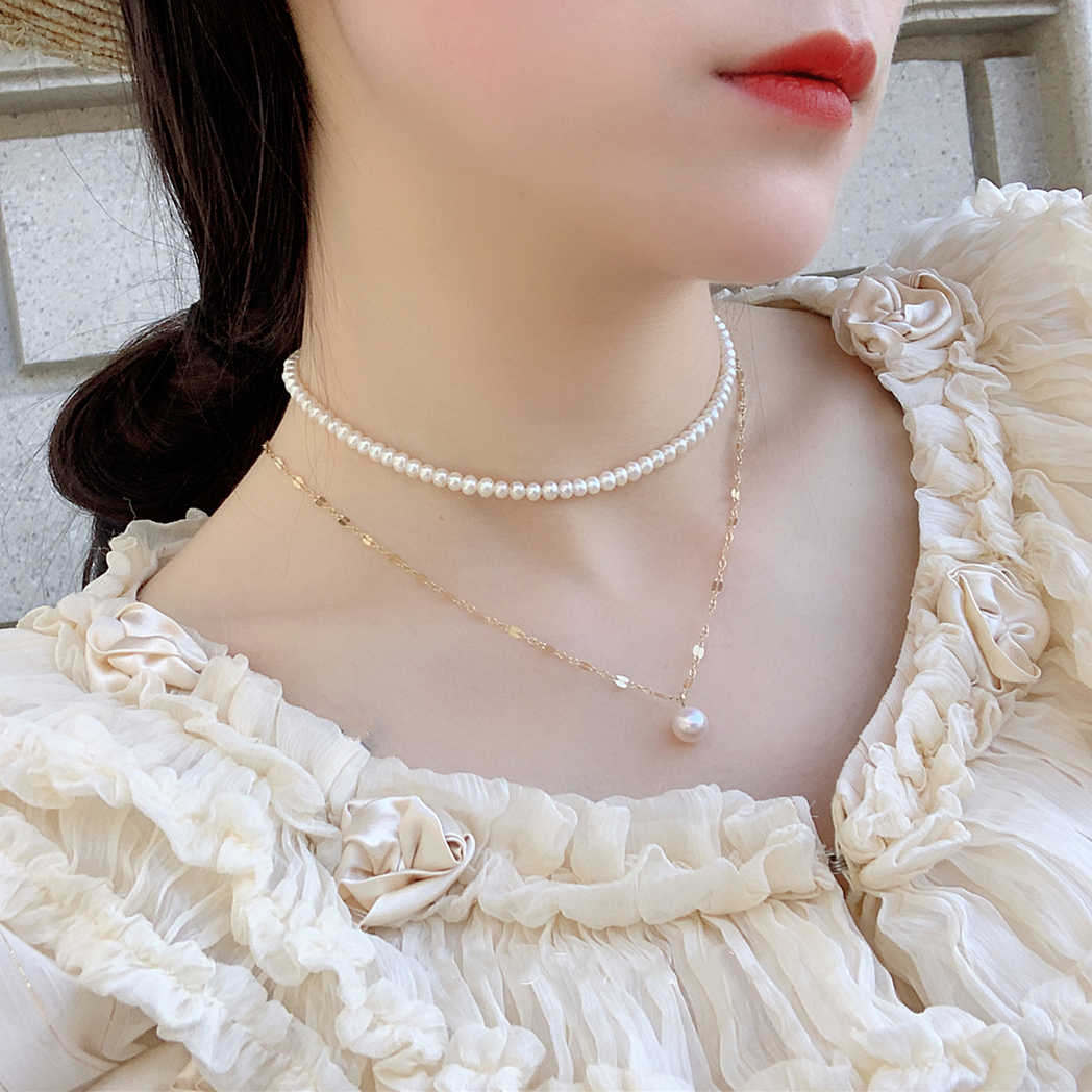CECILIA classic Hepburn natural small grain pearl 14k gold necklace clavicle chain temperament choker female