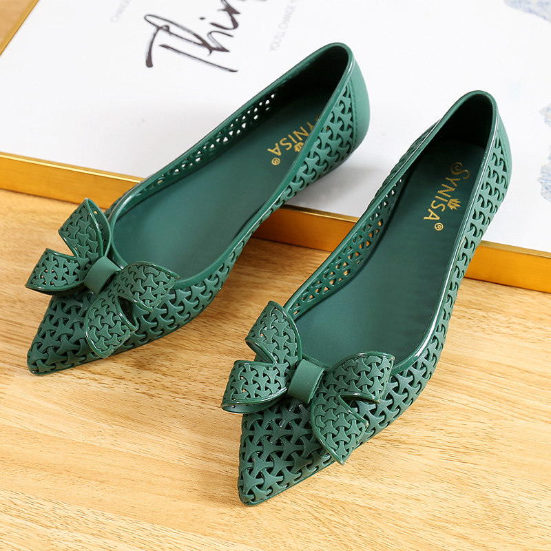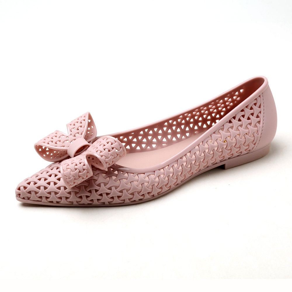 2022 Brazil's new waterproof rain boots pointed bow hollow sandals breathable flat beach shoes jelly shoes women