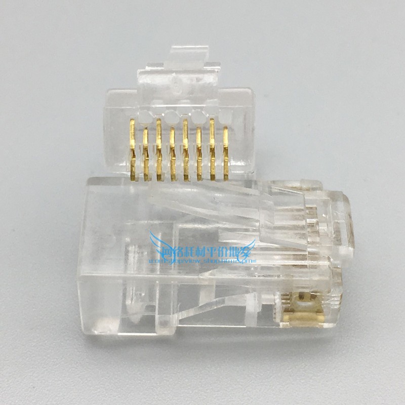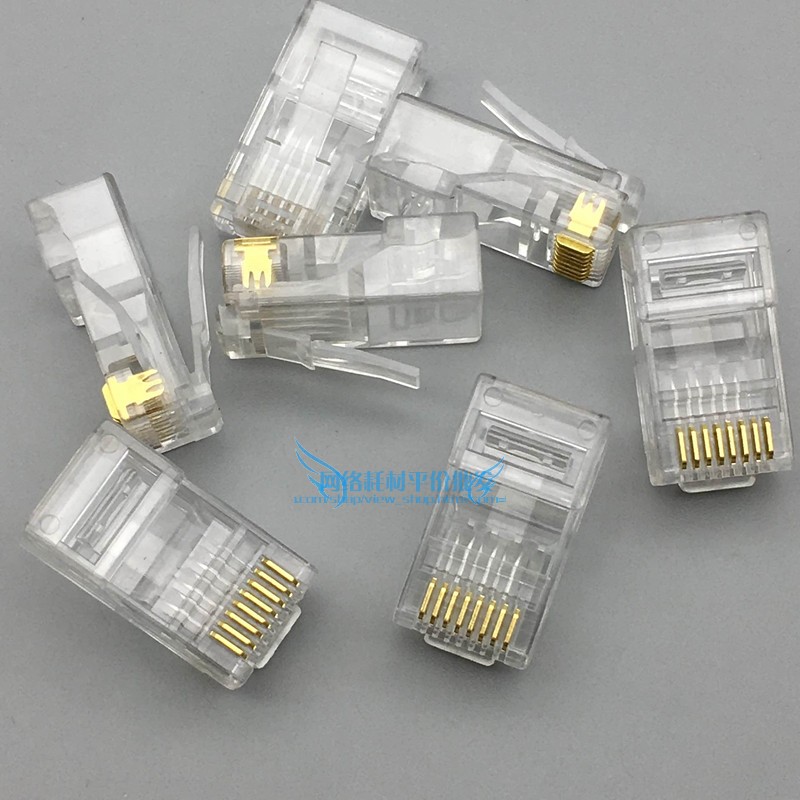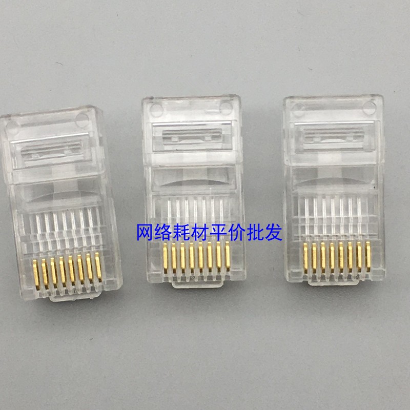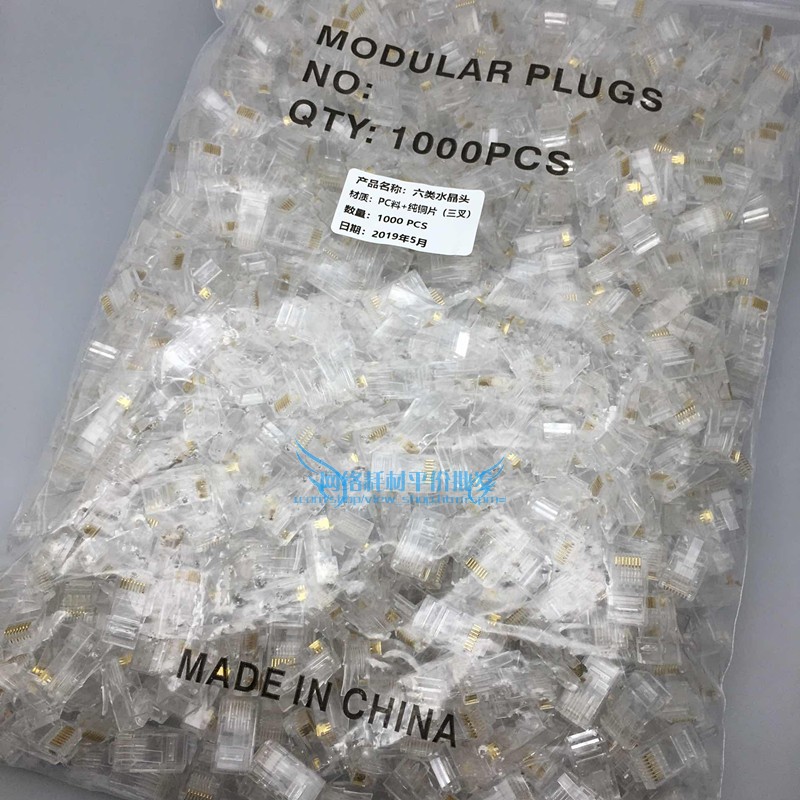 CAT6 six types of network crystal head 8P8C Gigabit network route crystal head 0 35 three-pronged pure copper sheet 1000 bags