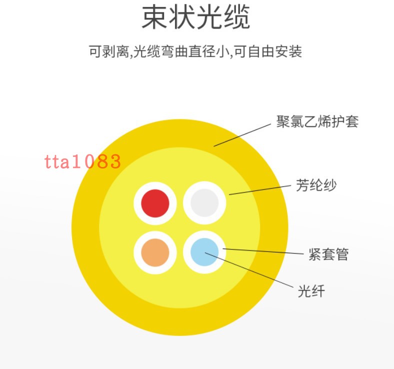 Putian Indoor 12 Core Single Mode Fiber 4 Core 6 Core 8 Core 24 Core 48 Core Optical Cable Bundles Multi-Core Soft Optical Cable