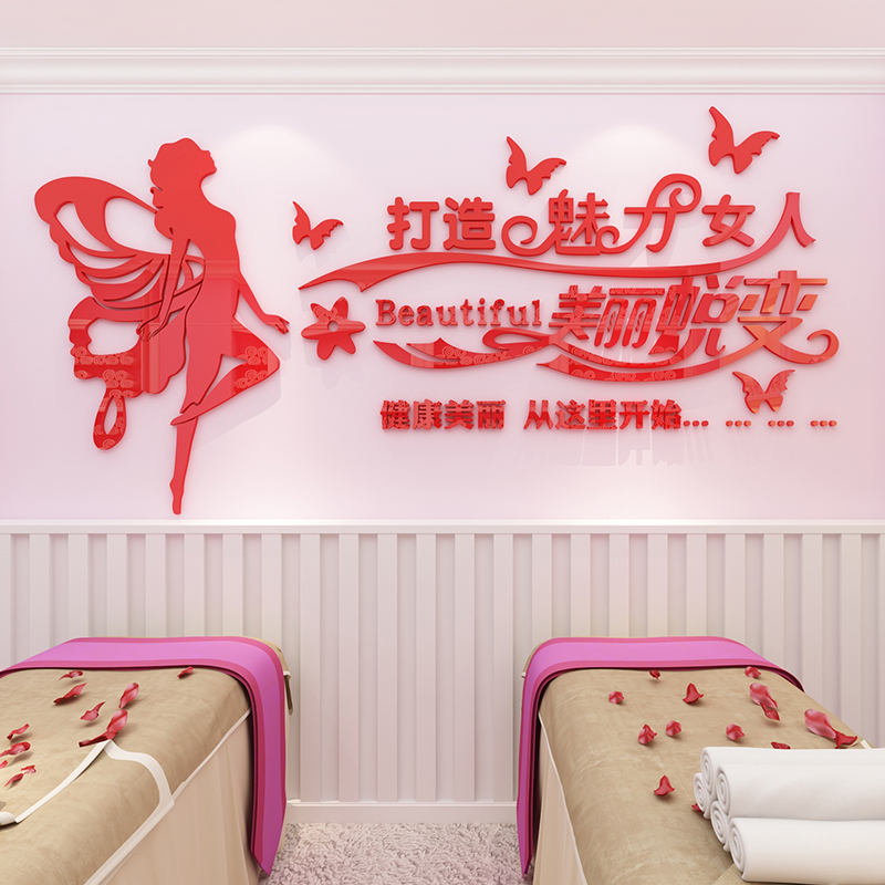 Beauty salon Hall layout acrylic wall stickers on the health Hall Club paper shop background decoration painting