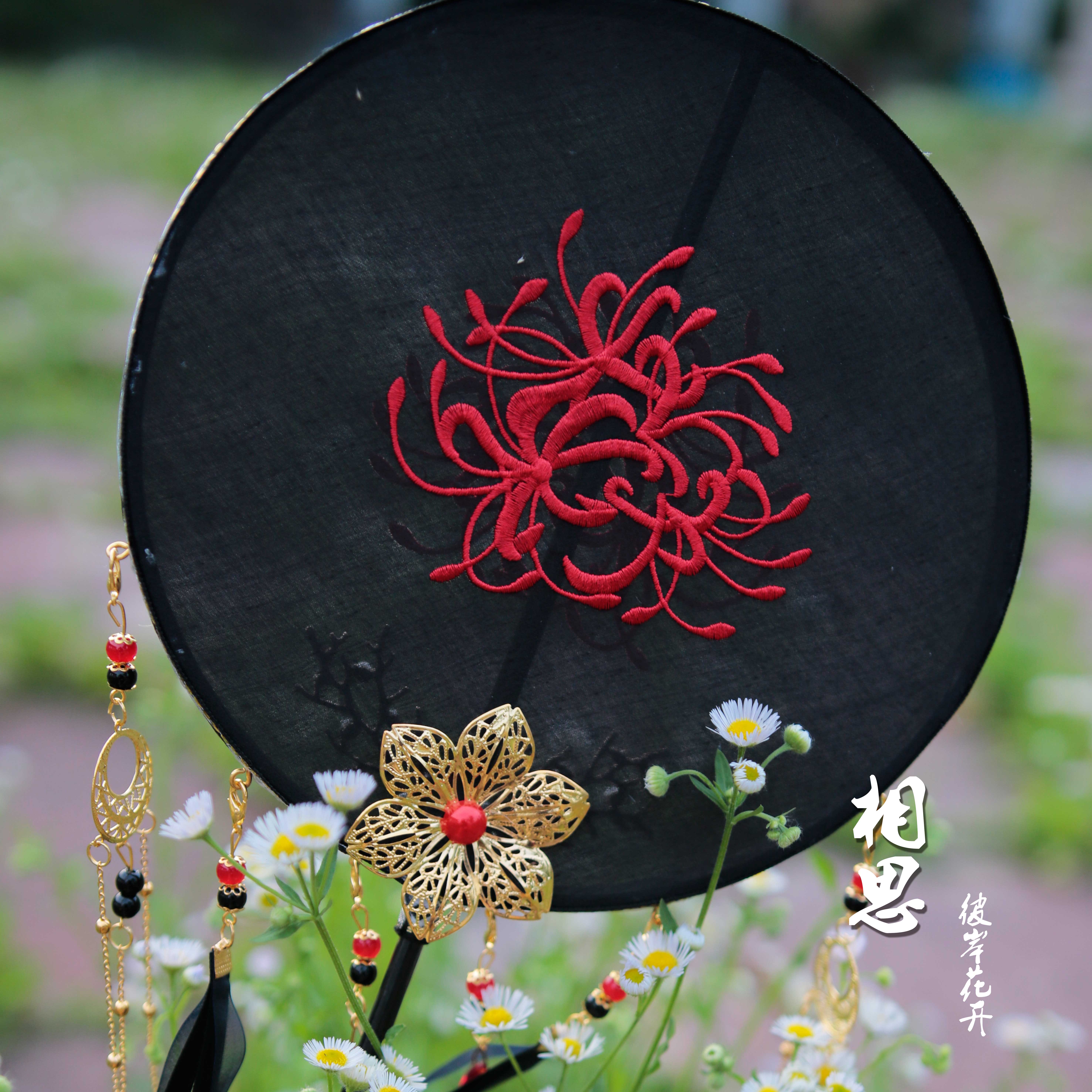 Xuetingfang Acacia original design Ancient style long handle embroidery group fan Bana Hanfu photography catwalk