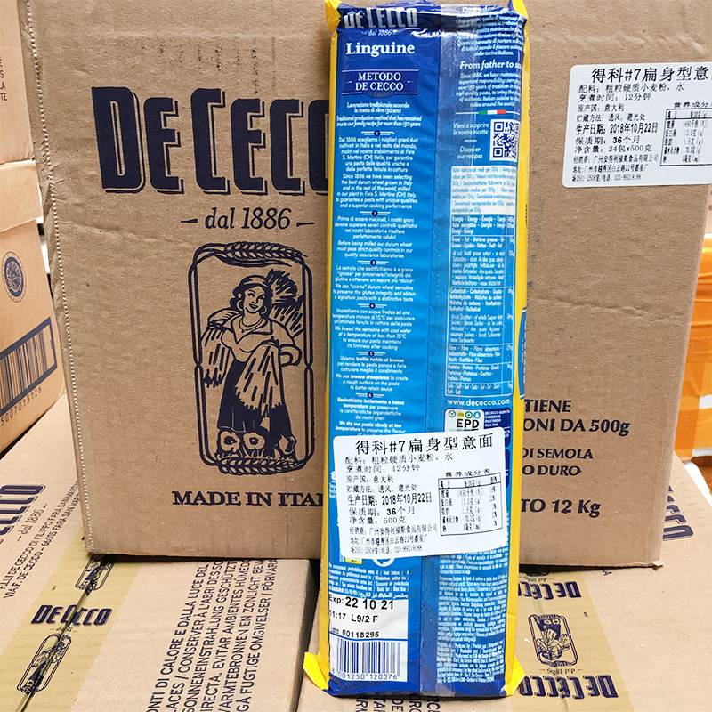 Imported DeCecco deco No. 7 italian face 500g flat body type of pasta pasta powder Italian face 500g * 24 bag