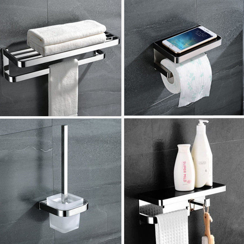 Towel rack 304 stainless steel storage shelf Hotel powder room bathroom folding bath towel pendant set free hole