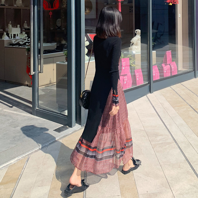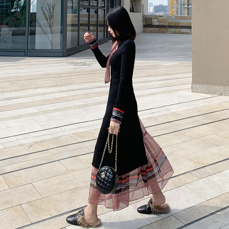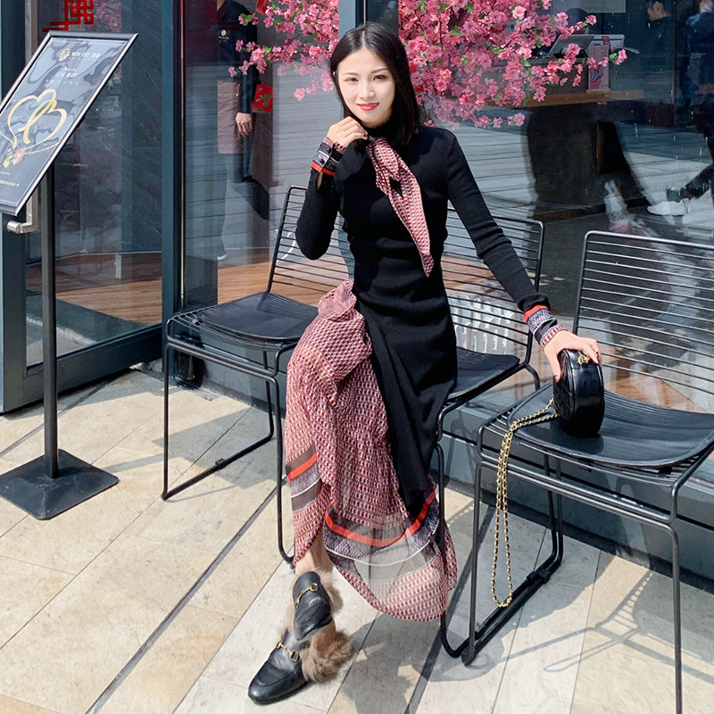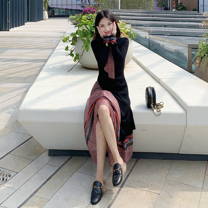 2023 New female winter dress French retro temperament closing high - sense goddess knitted snow spinning dress suit