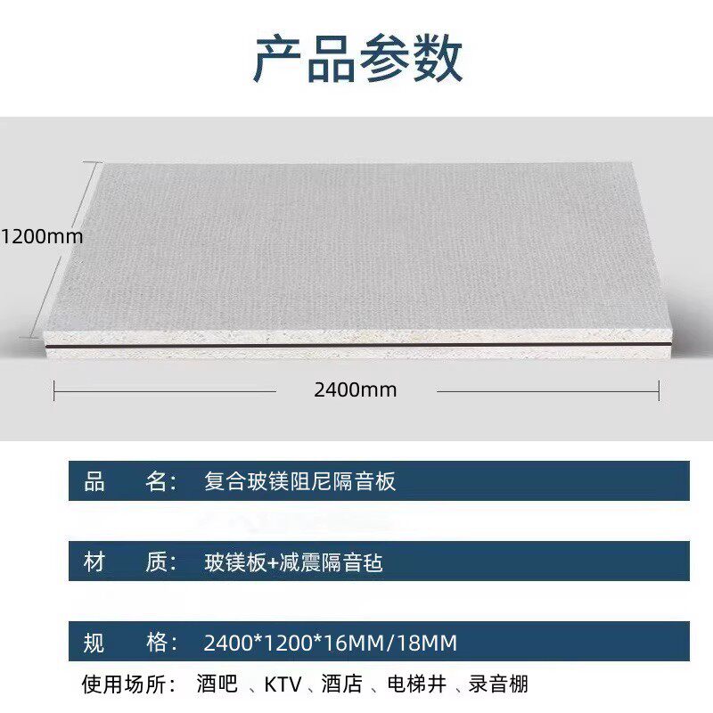 Glass magnesium sound insulation board bar KTV cinema special damping sound insulation board wall ceiling decoration material fire board