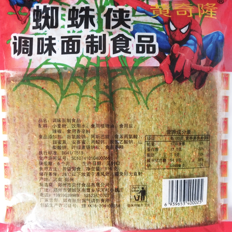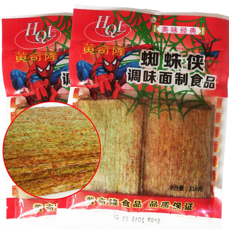 Huang Qilong's Green Spicy Strips Food Spiderman Shredded Spicy Chips Post-8090s Nostalgic Snacks