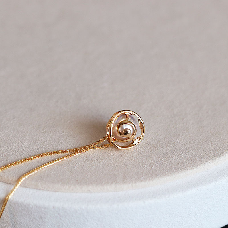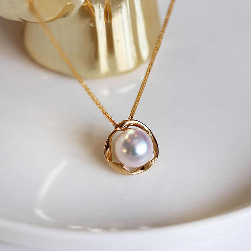 Thick Gold Rose Wrap Japan Imported Aurora Akoya Natural Seawater Pearl 18K Gold Pendant Does Not Contain Necklace