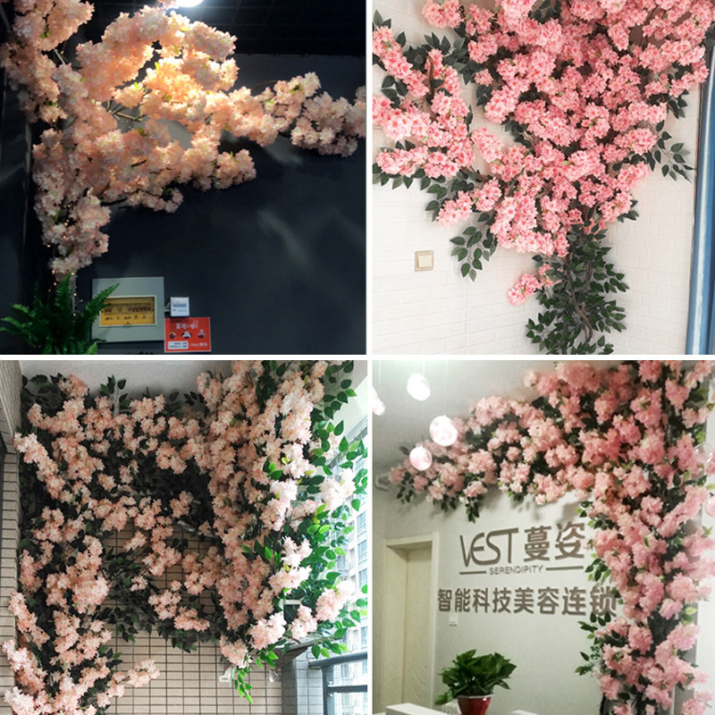 Simulation Cherry Blossom Branches Peach Blossom Fake Flowers Vines Bar Indoor Living Room Ceiling Decoration Air Conditioning Piping House Residence Online Red Shop