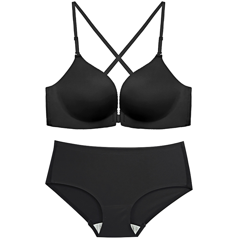 Japan Beauty Back Underwear Girl Cross Strap Sexy on No Mark No Steel Ring Front Button Thickened Underwear Set to receive the secondary milk