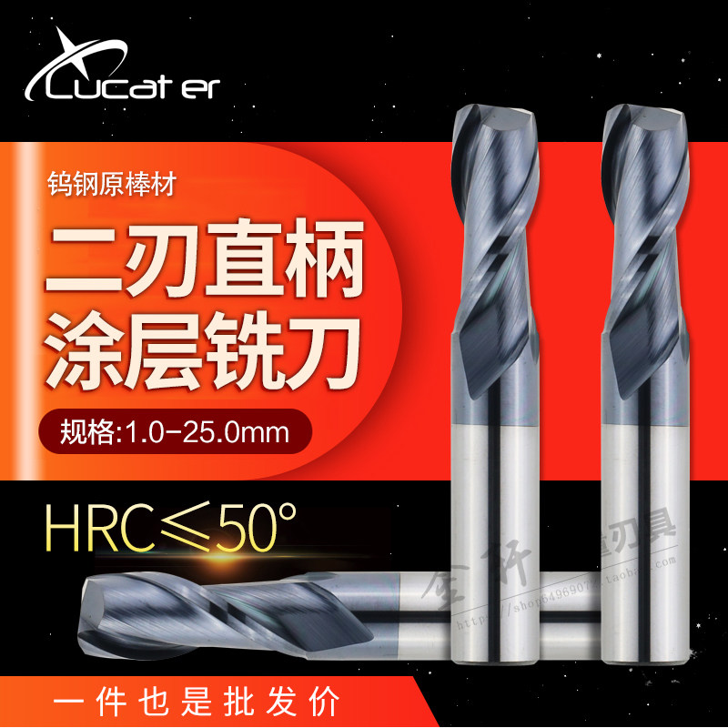 Lucater Taiwan 50-degree tungsten steel milling cutter 2-edge coated alloy keyway milling cutter 6 8 10 12 16-25mm