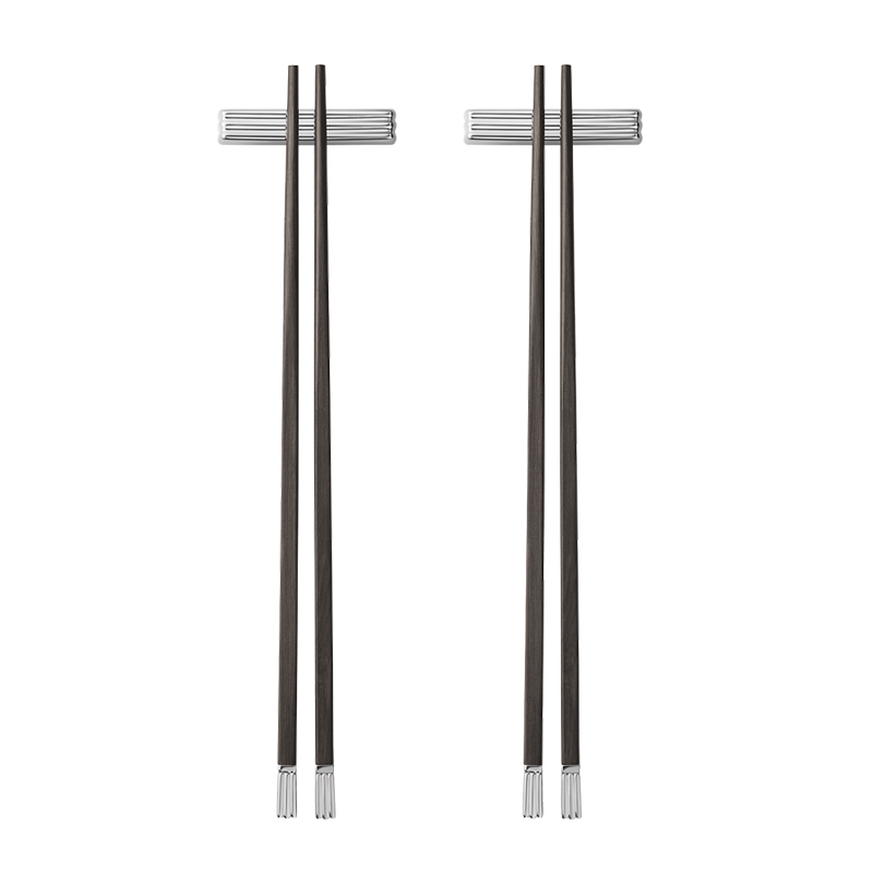 Georg Jensen ebony stainless steel bernadotte chopsticks chopstick rest gift box assembly