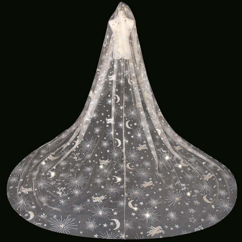 Tikyin same bride dress female Korean-style long drag-tailed wedding star shiny pieces of headdress super-fairy yarn