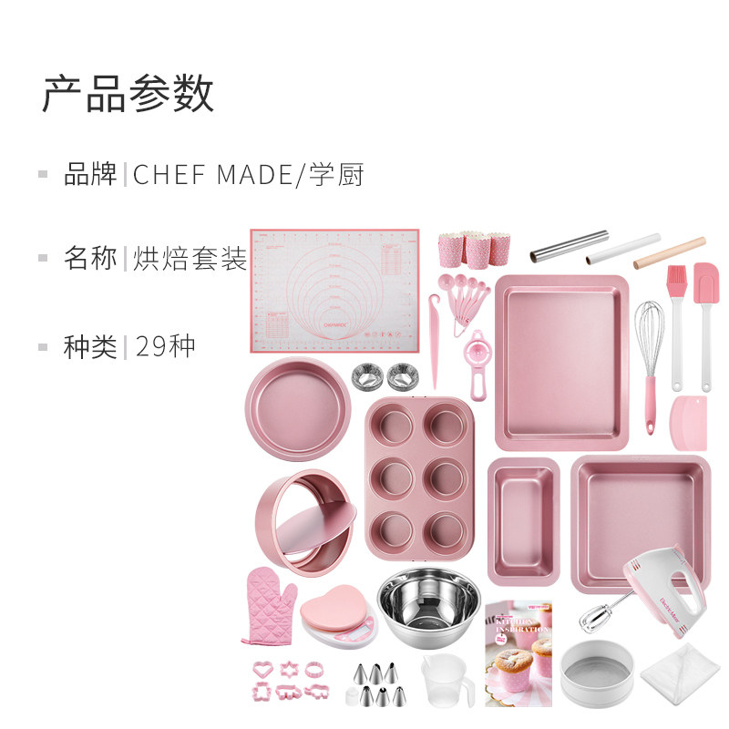 Learn to cook baking tool set New starter Home pink 29-piece set of oven utensils Bread cake mold