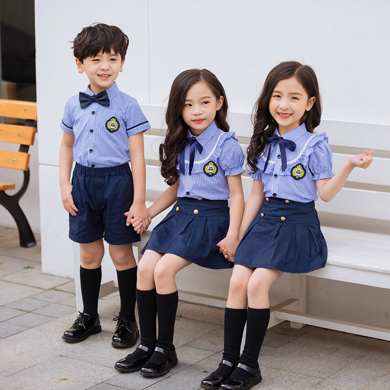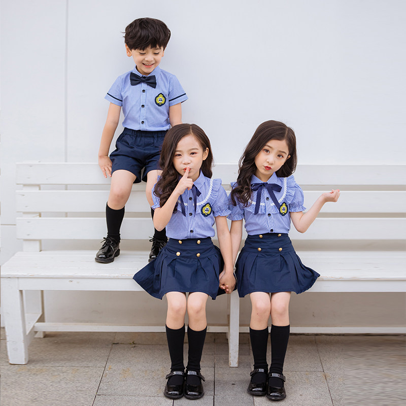 Primary school student school uniform suit summer short-sleeved middle school student British college style children's graduation photo Kindergarten class uniform Garden uniform