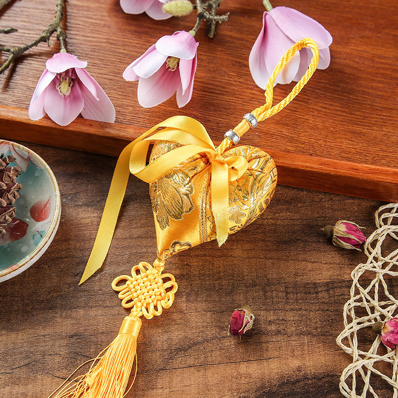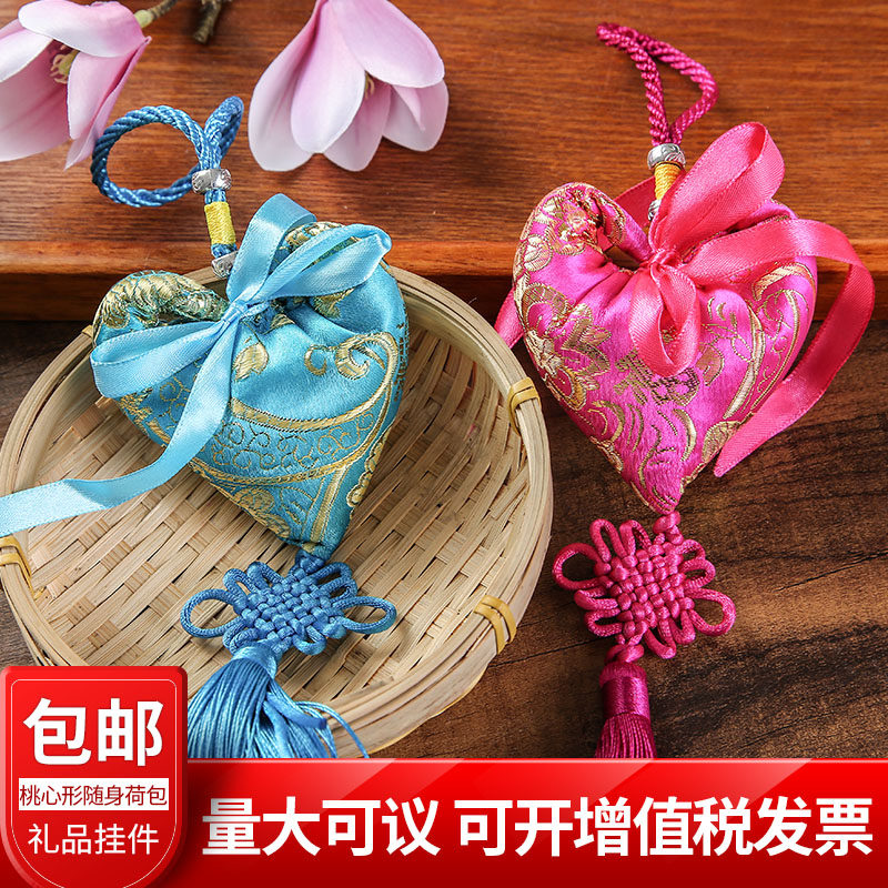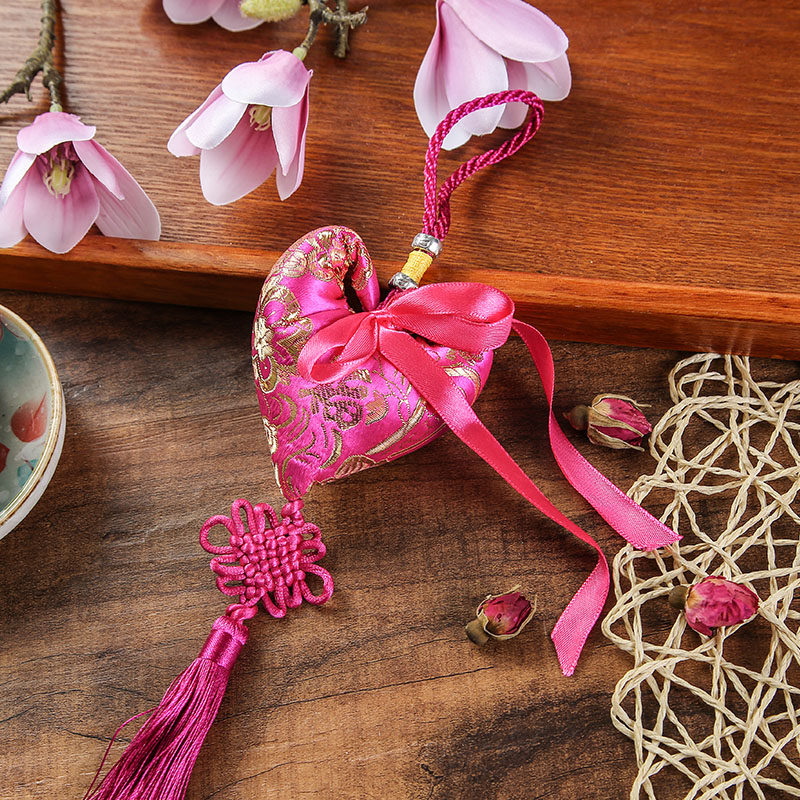 Dragon Boat Festival sachet Sachet Peach heart-shaped portable purse with tassels Auspicious safety car pendant gift Mosquito repellent bag